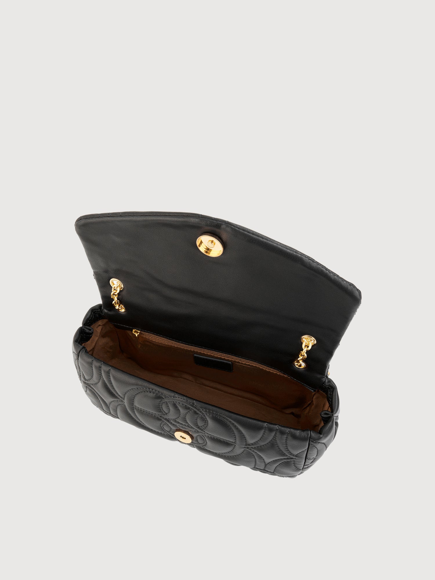 The Naiara Shoulder Bag features a La Luna monogram, capturing every detail of craftsmanship. Designed to fit the life of a city dweller, it adds to moments of little luxuries found in self-expression.