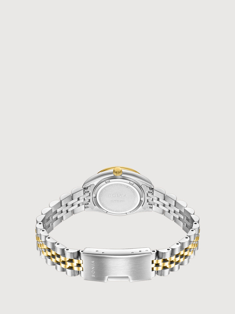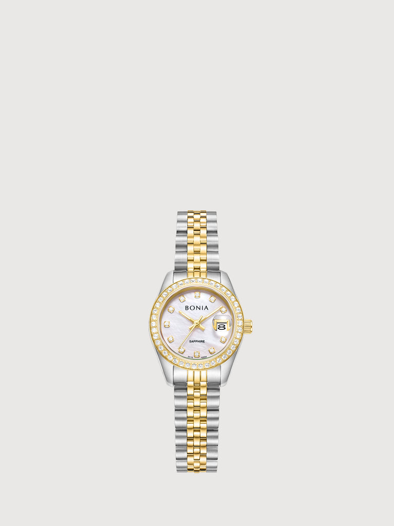 The Tonia Stainless Steel Women's Watch features a solid bracelet that enhances the look of sapphire crystals whether day or night. Available in a variety of colours, this stunning piece exudes the feel of luxury and versatility for dinners or daytime meetings.