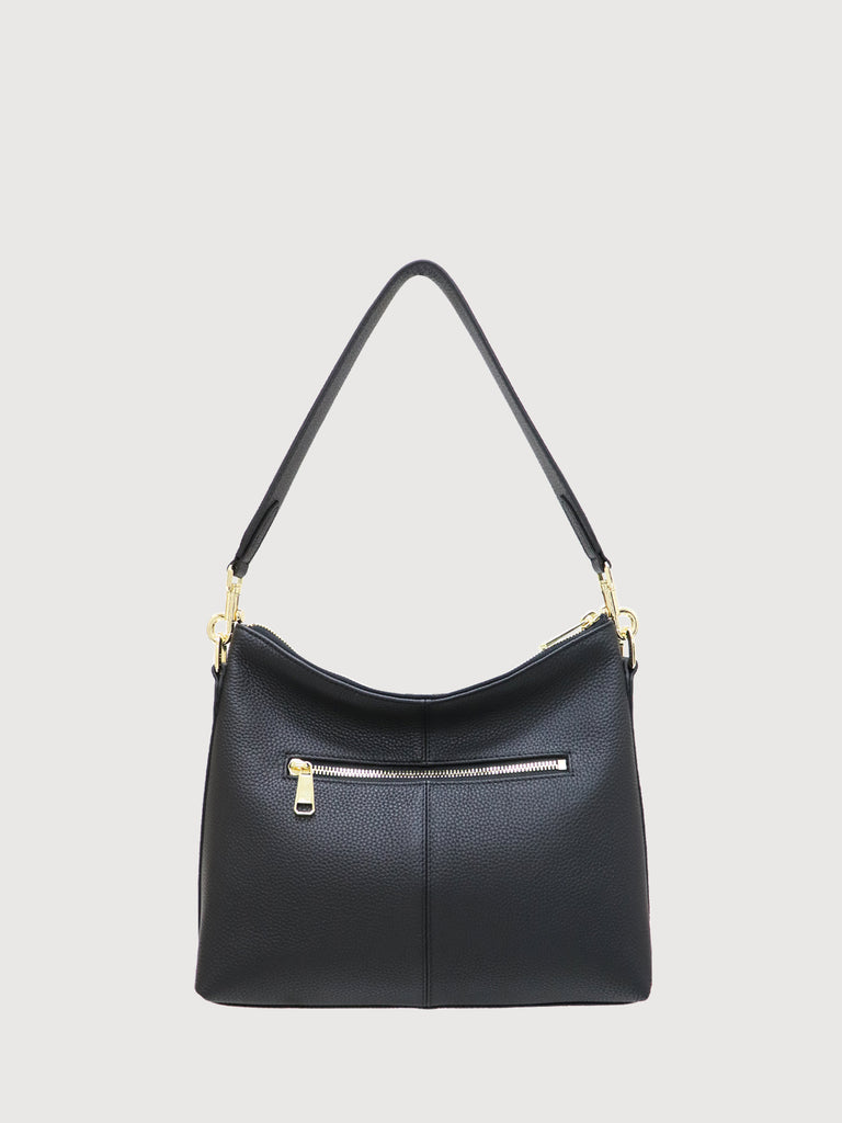 The Elena Shoulder Bag completes the aesthetic of contemporary class. Designed with pockets for everyday essentials, this sophisticated piece embraces functional elegance and versatility whether day or night.
